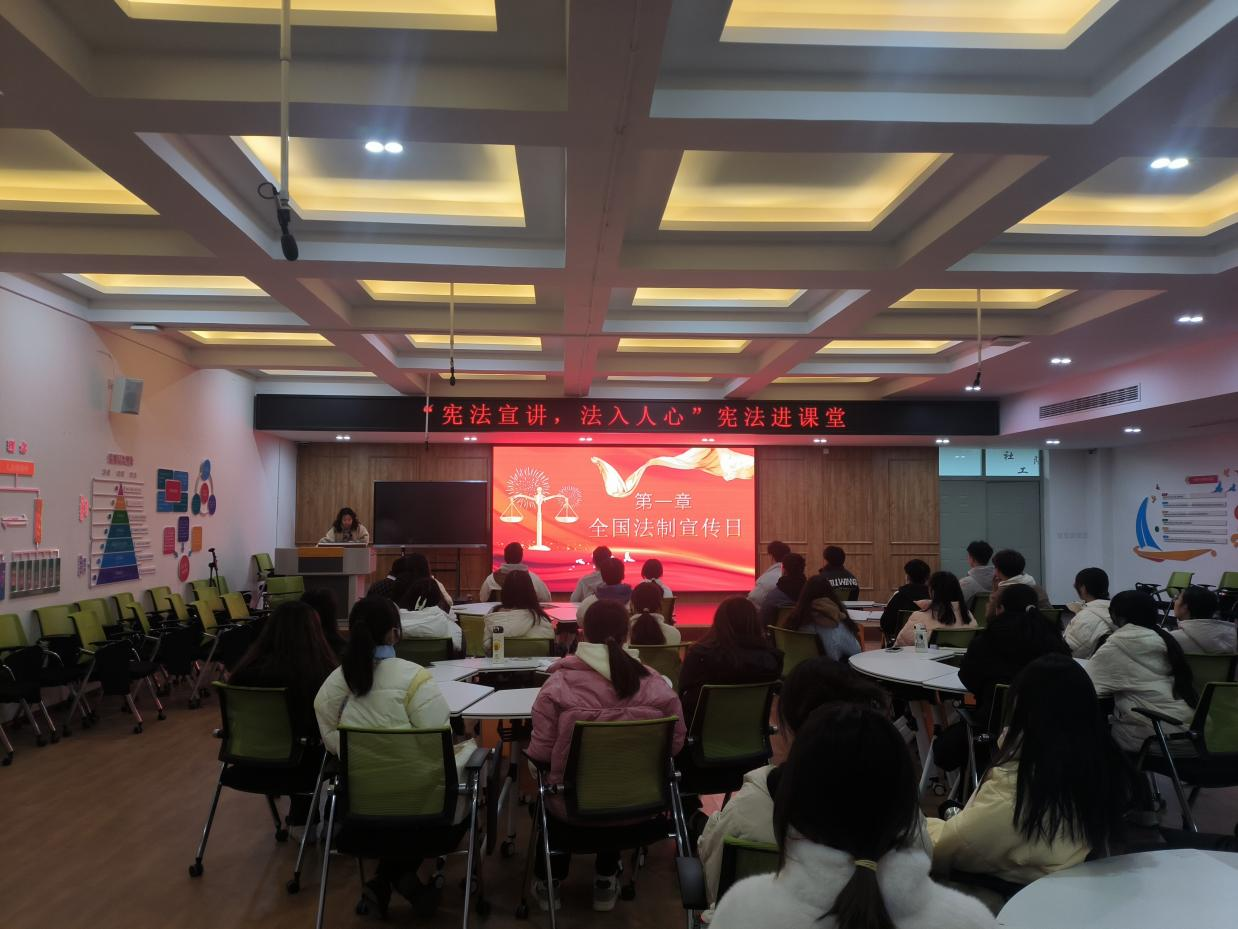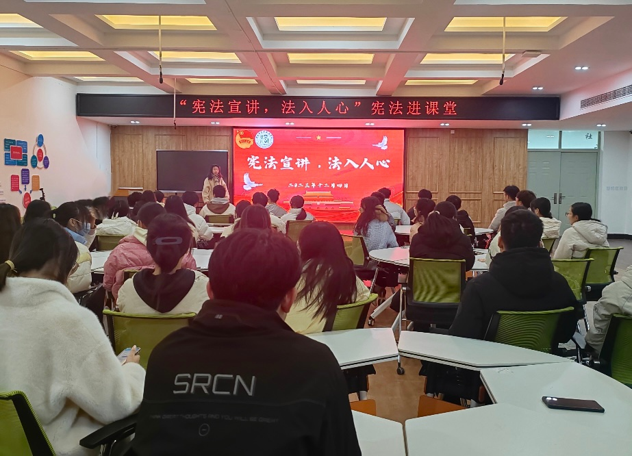 为认真学习宣传贯彻党的二十大精神,深入学习贯彻习近平法治思想,营造浓厚校园法治氛围,激发公司师生学习宪法热情,增强老员工法治意识,在第十个国家宪法日来临之际,mk体育组织开展“宪法宣传周”系列活动。12月1日,公司在行方楼234教室举办“宪法宣讲 法入人心”宪法进课堂活动,各专业员工代表参加活动。