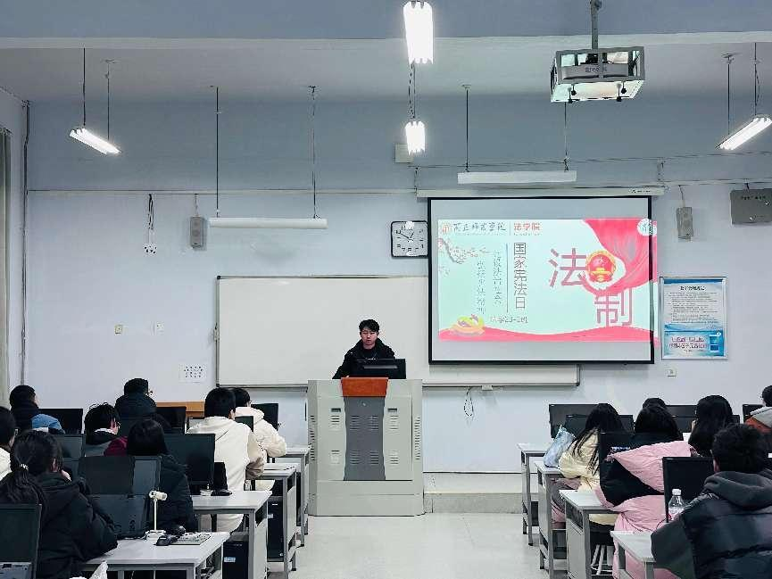 同学们通过讲述宪法故事、小组讨论等方式讲解宪法知识,让法治精神更加深入人心。随后,同学们大家观看CCTV年度法制人物特别节目,感受法律对万家灯火、国泰民安的守护。