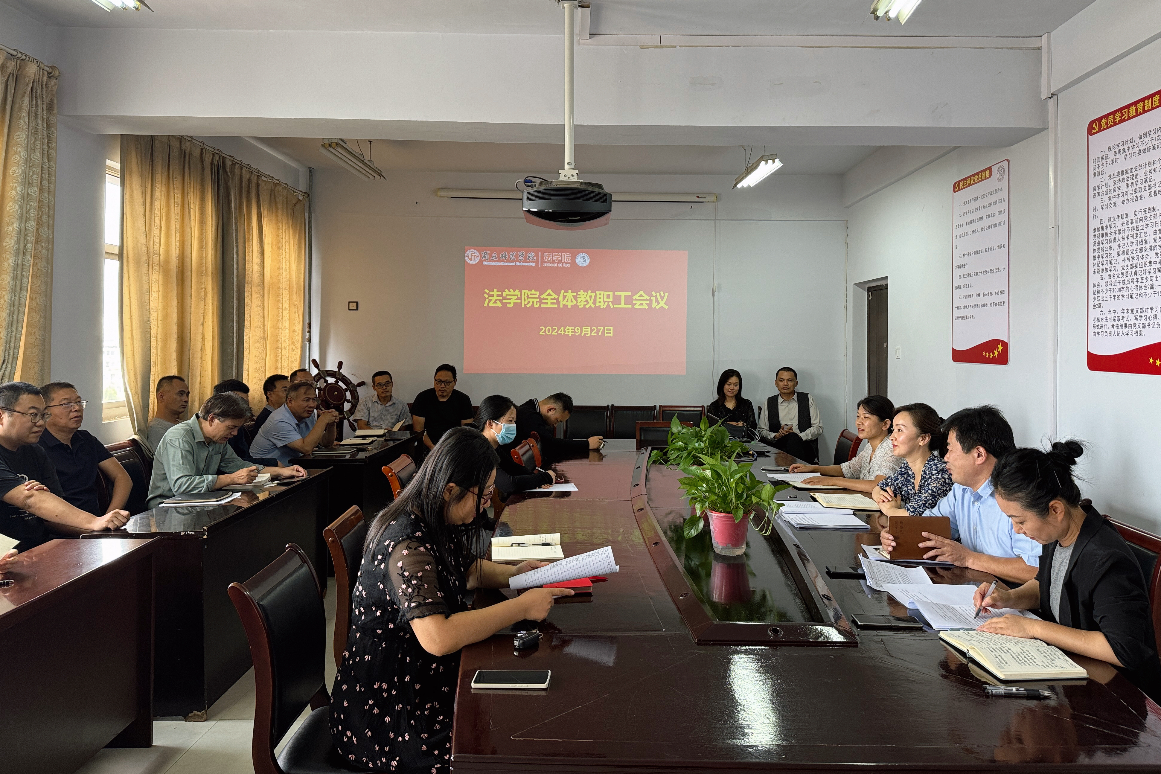 9月27日下午,mk体育在梁园校区应天楼717会议室召开全体教职工会议,传达学校本科公司产品审核评估评建工作推进会精神,研究贯彻落实举措。学院全体班子成员出席会议,经理赵世锋主持会议。